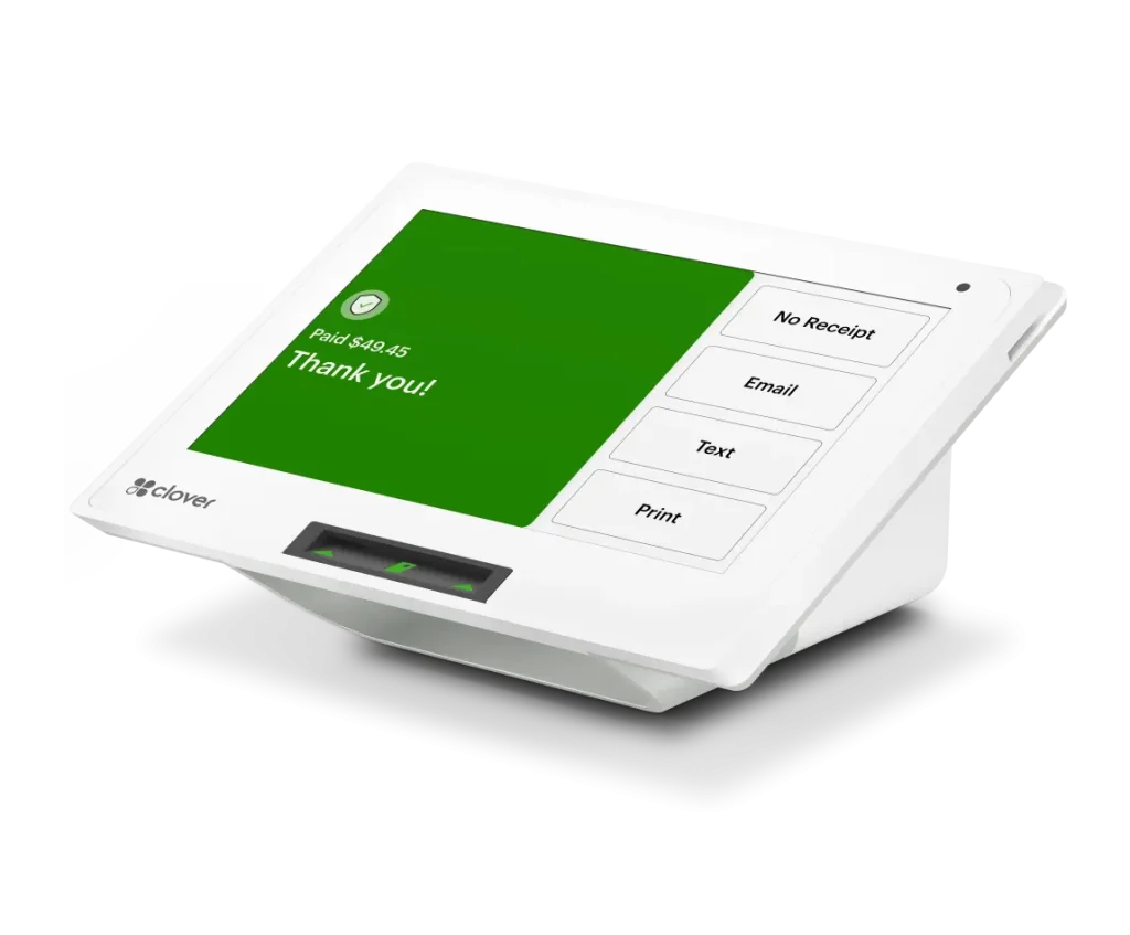 Clover Mini is a full POS (Point of Sale) system in a small package. Clover Mini provides merchants the opportunity to get more from their POS device by including access to a variety of software and apps, above and beyond payments. With its sleek design, it will also WOW their customers.
